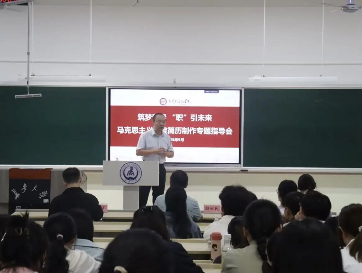 为进一步提升学生职业规划意识和求职核心竞争力,助力2026届毕业生做好求职准备,9月4日,马克思主义学院在南校区B301教室举办“筑梦青春,‘职’引未来”简历制作及面试技巧专题指导会。本次讲座特邀长安大学招生就业处就业指导教研室主任赵裕民作专题指导。院党委副书记冯迪,学办副主任兼团委书记秦丰,辅导员张子婧及学院2026届全体毕业生、其他年级部分学生参加此次活动。赵裕民围绕"职业规划"与"就业准备"两大主题展开深入讲解。...