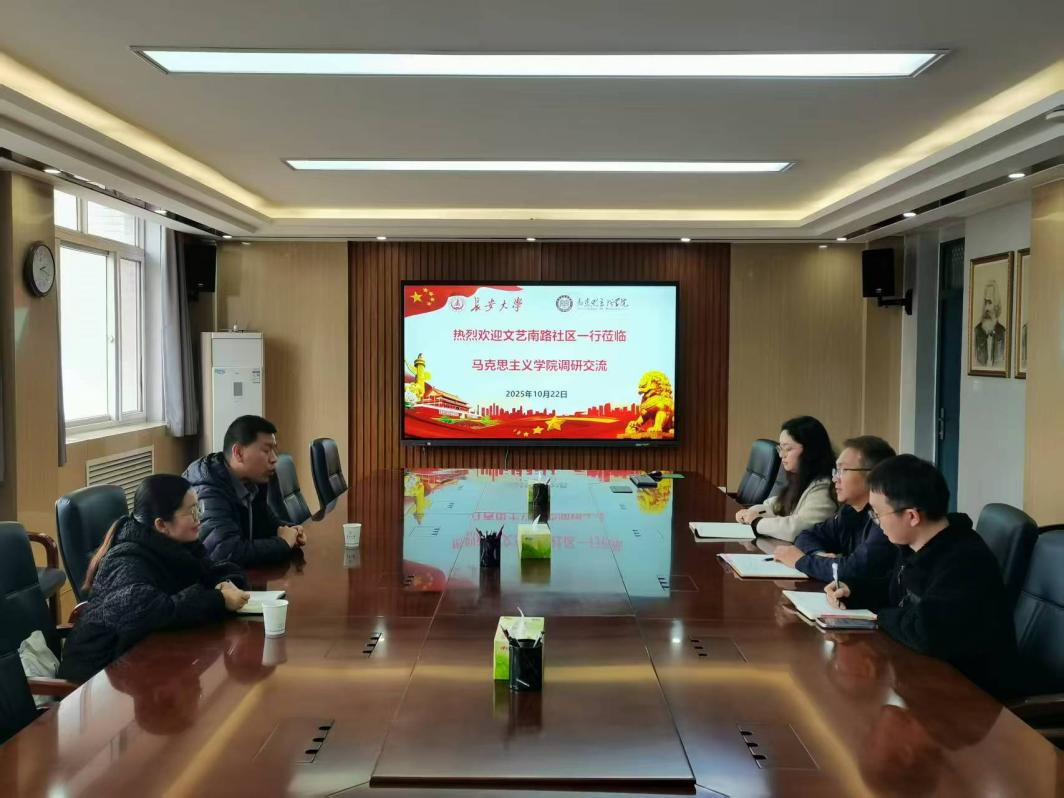 为进一步加强校地交流合作,深化协同育人机制,10月22日下午,碑林区文艺路街道文艺南路社区副主任杨政,社区工作人员衡华丽一行受邀来马克思主义学院就校地合作事宜进行交流座谈。院党委副书记冯迪,院学办副主任兼团委书记秦丰及研究生兼职辅导员张雅妮参加座谈。冯迪代表学院对文艺南路社区一行的来访表示热烈欢迎,围绕人才培养、品牌打造、劳动教育等方面简要介绍了学院总体情况。希望双方在学生实习实践、志愿服务、理论宣讲进社区等方面深入合作,...