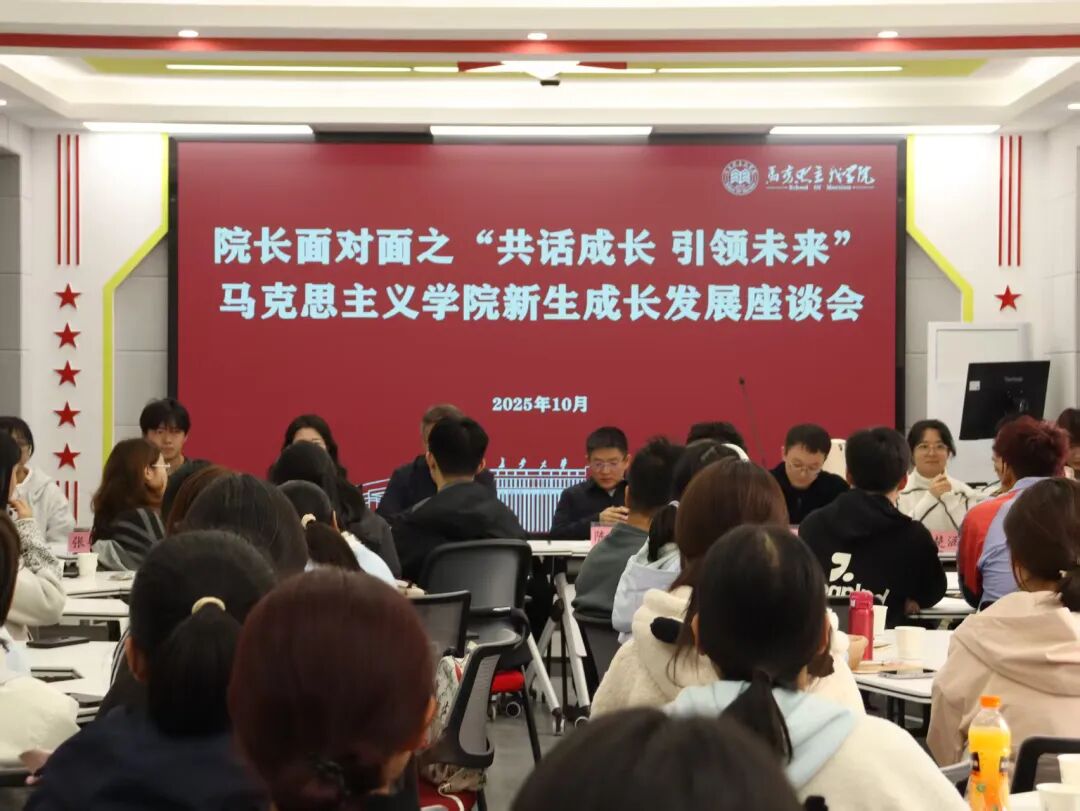 为切实做好新生教育工作,加强专业认知、学业规划和职业规划教育,增强学生的专业认同感、归属感,帮助新生“入好门、走好路、学好业、成好才”,10月22日,马克思主义学院于长安大学思政课虚拟仿真体验教学中心举办“共话成长 引领未来”本科新生成长发展座谈会。院长陈怀平,院党委副书记冯迪,学办主任兼团委书记秦丰,本科生辅导员刘堃,学院团学组织、长安星火宣讲团、尚廉学社主要负责人以及全体本科新生参会。会议由冯迪主持。...