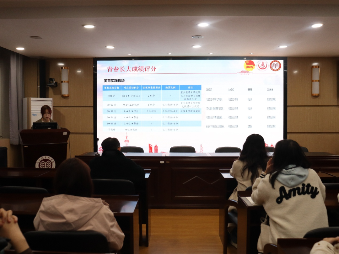 学院团委组织部负责人赵婉婷围绕“青春长大”第二课堂系统的使用进行了详细辅导与实操演示。她介绍了第二课堂素质拓展实践课程的育人理念以及课程项目体系构成,讲解了“积分累计规则”“活动参与方式与流程”“作品提交要求”及“学分认定及记录查询”等内容。