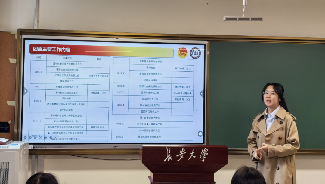 院团委副书记赵楚涵围绕团委主要工作、重点任务及相关技能三方面进行系统讲解,明确了团务部、组织部及全体团委成员的具体职责与工作要求,强调了智慧团建系统信息录入及暑期社会实践等重点事项。赵楚涵结合实例讲解了新闻稿撰写、照片拍摄及通知编写的基本规范与注意事项,以确保团委后续各项工作有序推进。