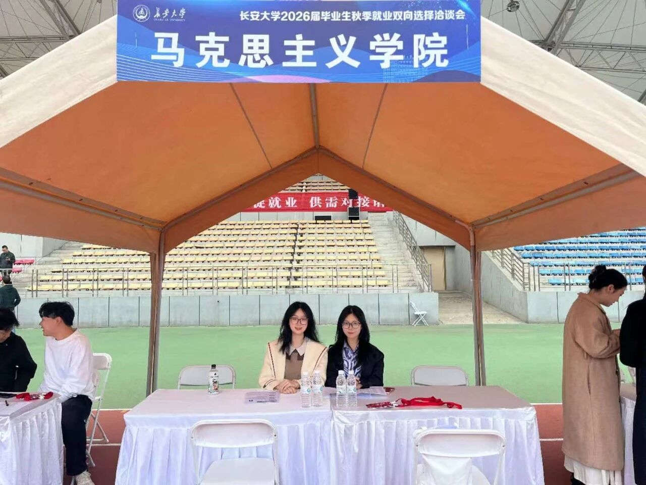 2025年10月16日,长安大学2026届毕业生秋季就业双向选择洽谈会在渭水校区朝晖运动场举办。马克思主义学院紧抓秋季校园招聘“关键期”,积极组织学生参与双选会,全力为毕业生搭建就业桥梁,推动就业工作扎实落地。