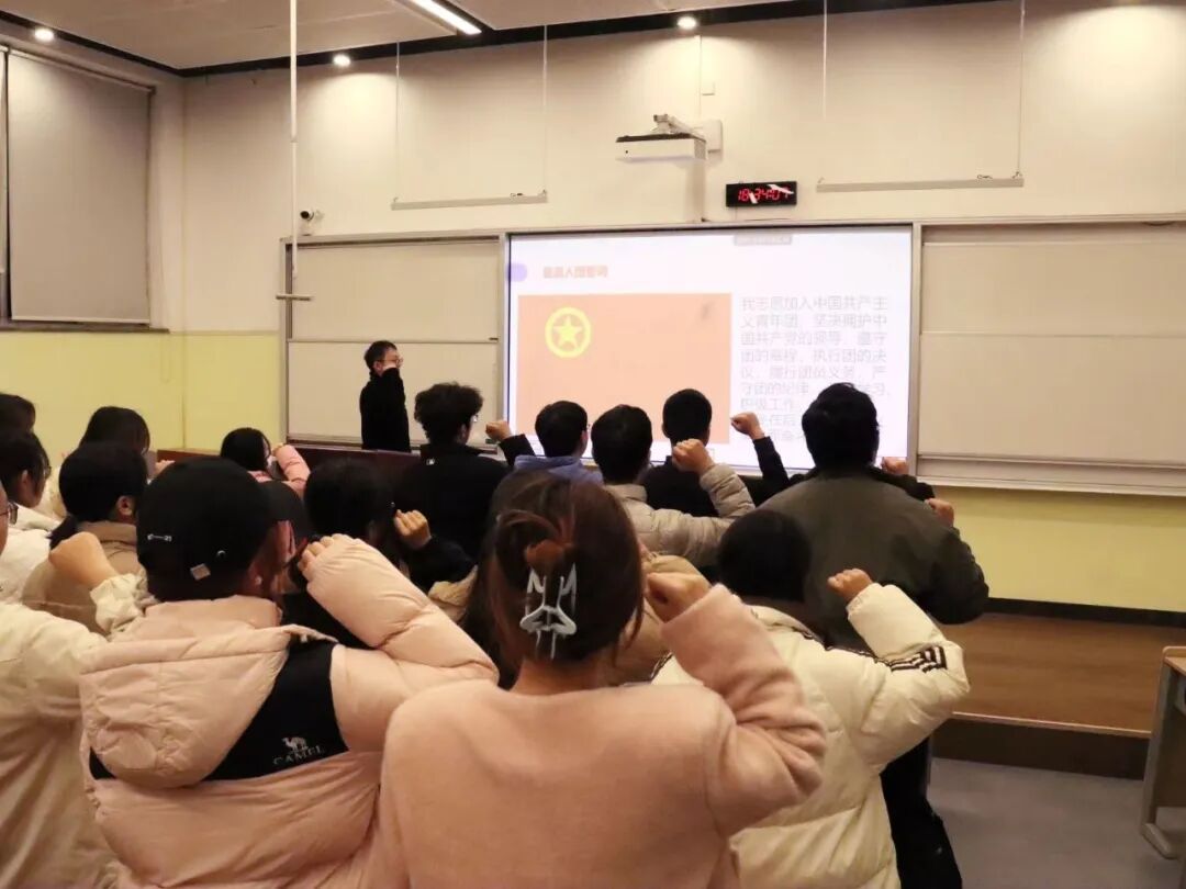 秦丰带领全体团员重温入团宣誓词。此次团课立足青年职业发展需求,为青年破解职业迷茫、明确发展方向提供助力,进一步引导团员担当践行时代责任,将个人成长的“小目标”融入国家发展的“大蓝图”,在服务国家和人民的奋斗中实现人生价值。