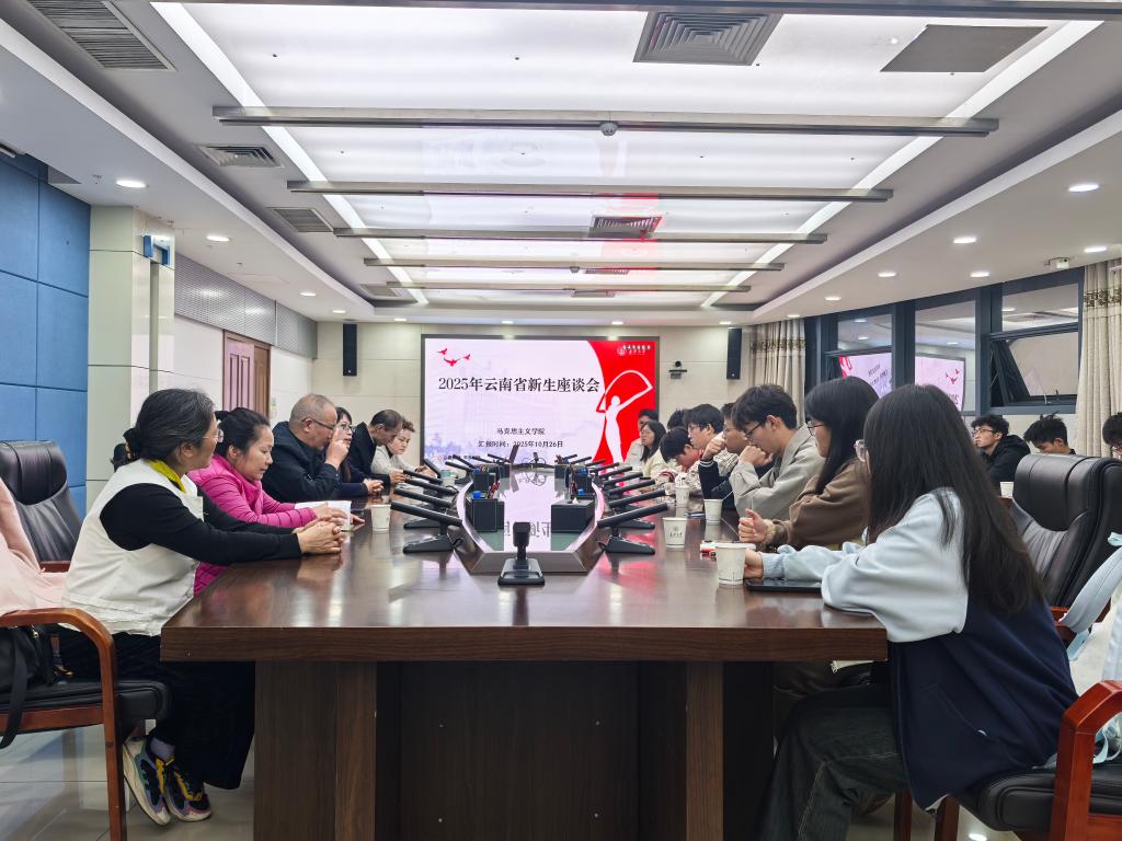 为深化招生宣传工作成果,搭建云南籍新生交流平台,进一步提升生源质量,马克思主义学院于2025年10月26日召开长安大学2025级云南省新生代表座谈会。学院党委书记李小芹、招生专员林祖梅及负责招生工作的教师代表刘明艳、刘晓宏、郭文娟、李海晶参加会议,会议由学院副院长王立洲主持。2025届云南籍研究生王景致作为优秀学长代表发言,38名2025级云南籍新生代表参加了本次座谈。