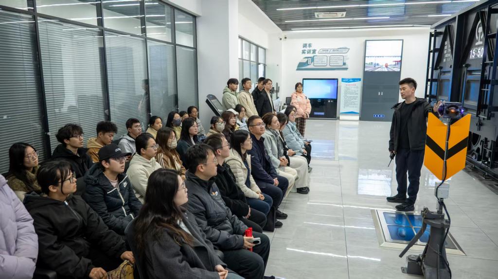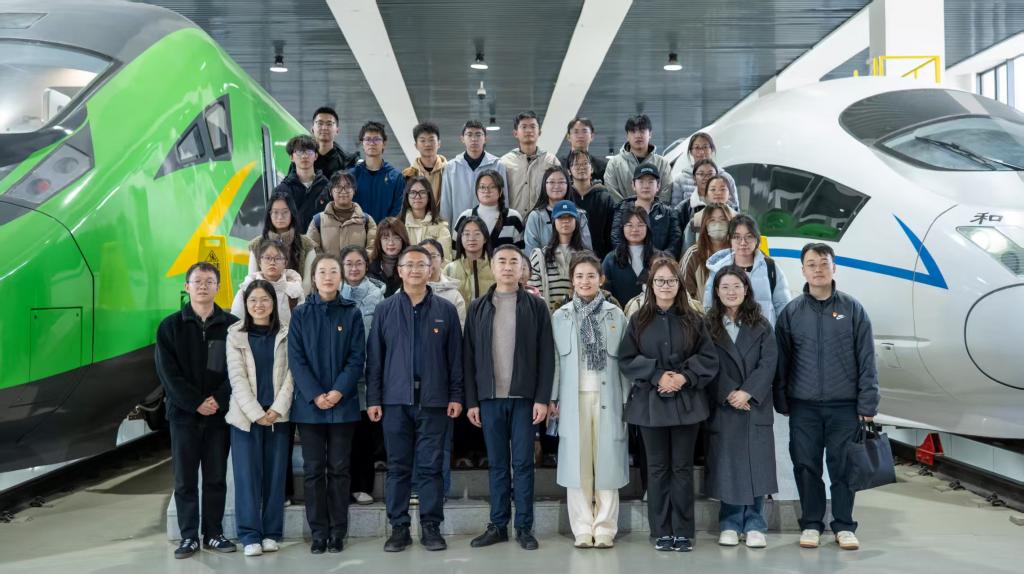 研学活动尾声,张美莎以“大国重器里的青春担当”为主题,在基地现场讲授专题思政课。她以中国铁路的辉煌发展历程为切入点,从蒸汽机车到复兴号高铁,从“追赶者”到“领跑者”的跨越,生动阐释了国家“站起来、富起来、强起来”的宏伟进程。张美莎指出,学习是青年找准时代定位的重要途径,新时代青年要打破专业壁垒,深刻领会党的二十届四中全会倡导的科技自立自强精神,从铁路关键技术的突破中读懂“大国重器”的战略意义,将理论认知转化为实践行动,以“执着专注、精益求精、一丝不苟、追求卓越”的工匠精神践行时代使命。