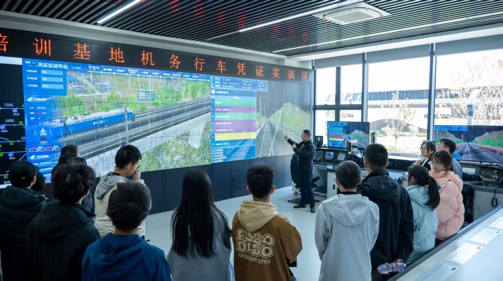 抵达基地后,在专业技术人员的细致指导下,师生们走进铁路实训设备体验区。高铁轨道检测系统前,大家驻足观摩技术人员操作精密仪器,了解轨道平顺性、几何参数等关键指标的检测原理;模拟驾驶舱内,同学们轮流体验操控流程,在仿真场景中感受高铁驾驶的严谨规范与技术要求。同学们通过近距离观察、亲手操作、实时提问,全方位接触现代铁路的核心技术与实操流程,切实体会到智能化、信息化技术为中国铁路建设注入的强大动力,更对铁路工作者“严谨细致、精益求精”的劳动态度有了直观认知。在基地讲解员的带领下,师生们走进陕西铁路陈列馆,开启一段跨越百年的铁路发展探寻之旅。百年征程中涌现的茅以升、詹天佑等行业先驱,以及新时代铁路劳模的先进事迹,深深震撼着每一位在场学子,更激励着大家涵养不畏艰险、永攀高峰的志气与勇气,深刻领悟“交通强国、铁路先行”的时代使命与战略内涵。