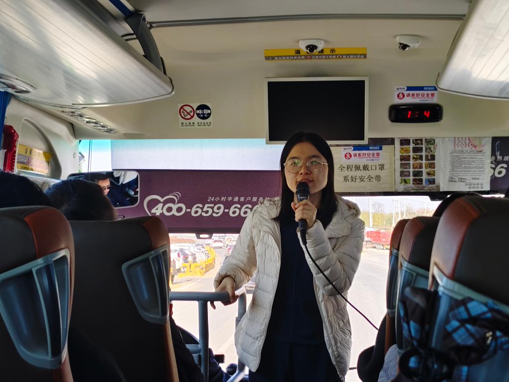 “移动的思政课堂,流动的理论宣讲”,在前往弘扬“劳模精神、劳动精神、工匠精神”示范性劳动教育实践基地的大巴车上,张美莎创新教学场景,将车厢变为沉浸式思政教育阵地。结合自身在共青团中央青年讲师团的宣讲工作经历,她用铁路行业劳模的鲜活案例串联起党的二十届四中全会精神核心要义,让抽象的理论与即将探访的劳动教育基地主题深度契合。