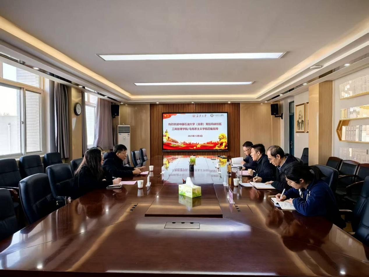 12月3日上午,中国石油大学(北京)克拉玛依校区马克思主义学院党委书记杨东杰一行来访马克思主义学院,开展调研交流。马克思主义学院院长陈怀平、副院长王立洲,院党委副书记、纪委书记冯迪及教师代表参加座谈。