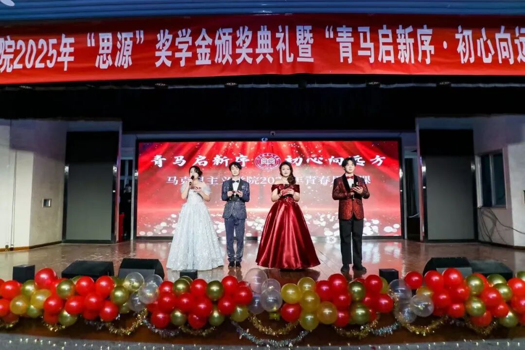 12月14日晚,马克思主义学院在南校区东院雁博园举办2025年“思源”奖学金颁奖典礼暨“青马启新序 初心向远方”青春思政课。校党委副书记徐引正出席青春思政课。党办、校办、宣传部、统战部、教师工作部、学工部、研工部、校团委、社会合作处、保卫处、南校区办等职能部门和兄弟学院负责人,马克思主义学院全体党政领导、各教研室教师代表、全体行政人员,马克思主义学院全体学生、校友代表、家长代表,来自兄弟学院的师生代表观看青春思政课。