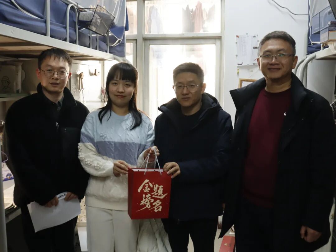 12月18日下午,马克思主义学院院长陈怀平,院党委副书记冯迪,院学办主任兼团委书记秦丰前往学生宿舍看望慰问我院考研学子,为他们送上充满关怀与祝福的“暖心大礼包”,深切关心同学们近期备考状态,倾听、解决同学们在考研过程中遇到的问题,悉心叮嘱同学们要调整好心理和身体状态,合理安排复习时间,做到全力以赴、张弛有度,充分利用好最后的复习时间,查漏补缺,也祝愿考研学子们马到成功、金榜题名!