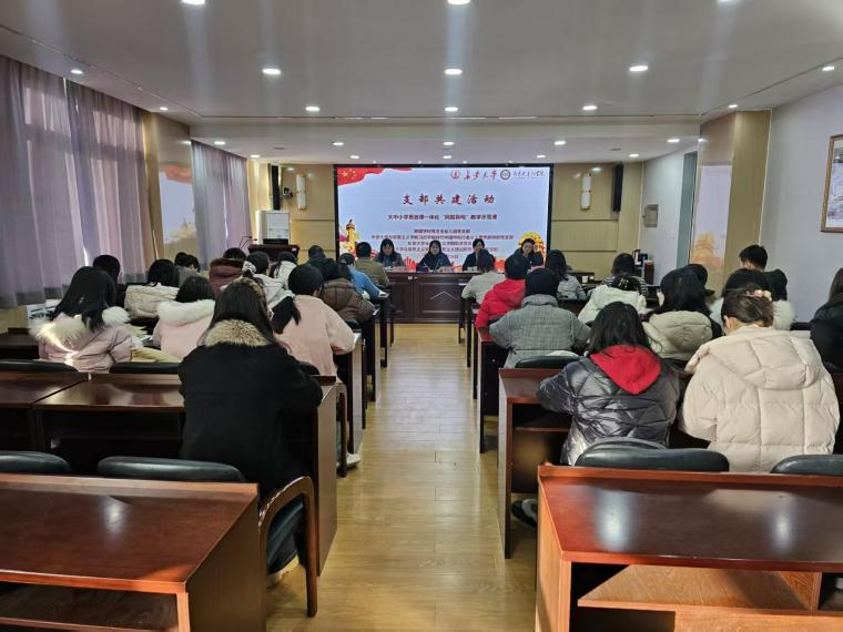 为深入学习贯彻党的二十届四中全会精神,落实“办好人民满意的教育”战略部署,推动大中小学思政课一体化建设向学前教育延伸,12月26日上午,马克思主义学院习近平新时代中国特色社会主义思想教研部党支部、机关党支部、马克思主义理论研究生第二党支部与附属学校党总支幼儿园党支部联合共建暨大中小学思政课一体化“同题异构”教学示范课团队建设活动在马克思主义学院503报告厅举行。马克思主义学院党委书记李小芹、基础教育办公室副主任谌亚芳、马克思主义学院党委副书记冯迪、附属学校党总支幼儿园党支部书记、翠华幼儿园园长王珩、朱雀幼儿园园长沈静以及双方师生、教职工代表共同参加活动。活动由王珩主持。